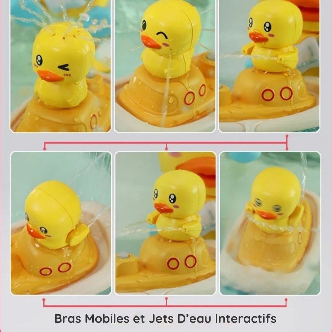 Le canard est équipé d’un système de douchette douce qui projette de l’eau quand on appuie : un effet fontaine magique que bébé adore. Cela encourage l’exploration sensorielle et le jeu dans l’eau, tout en rendant le bain moins redouté.
