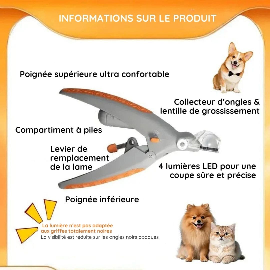 Un vrai plus pour les propriétaires de chats et chiens à griffes épaisses ou foncées, où la coupe devient souvent un pari risqué.