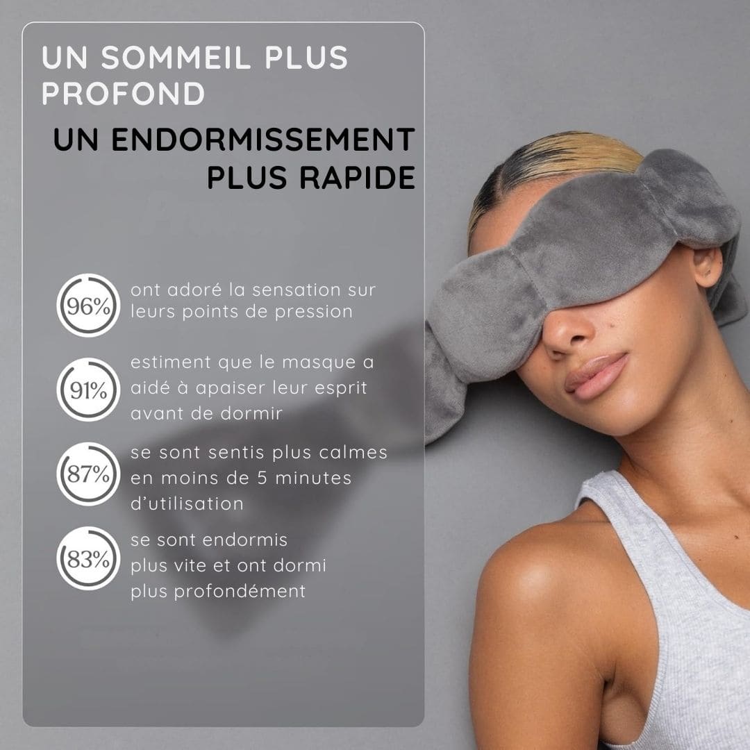 « Depuis que j’utilise ce masque, je m’endors plus vite et je me réveille moins la nuit. Je me sens beaucoup plus reposée le matin. »